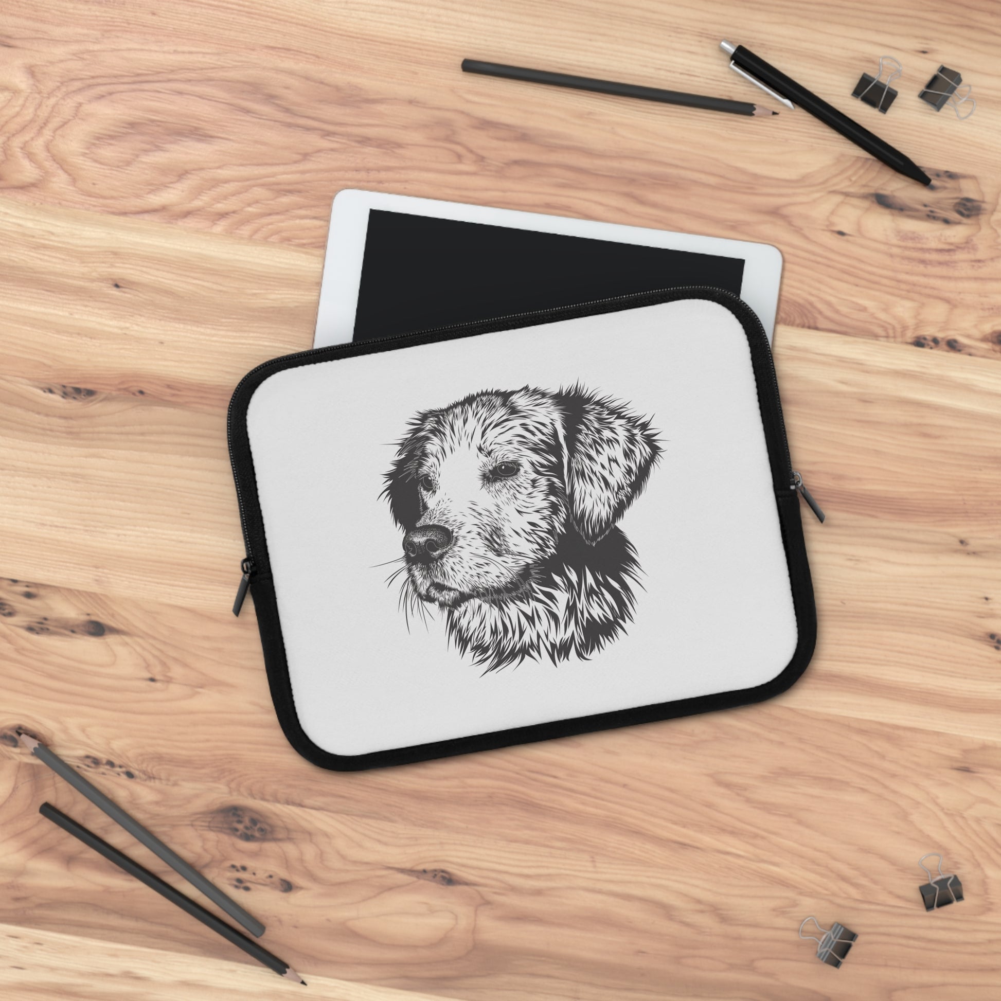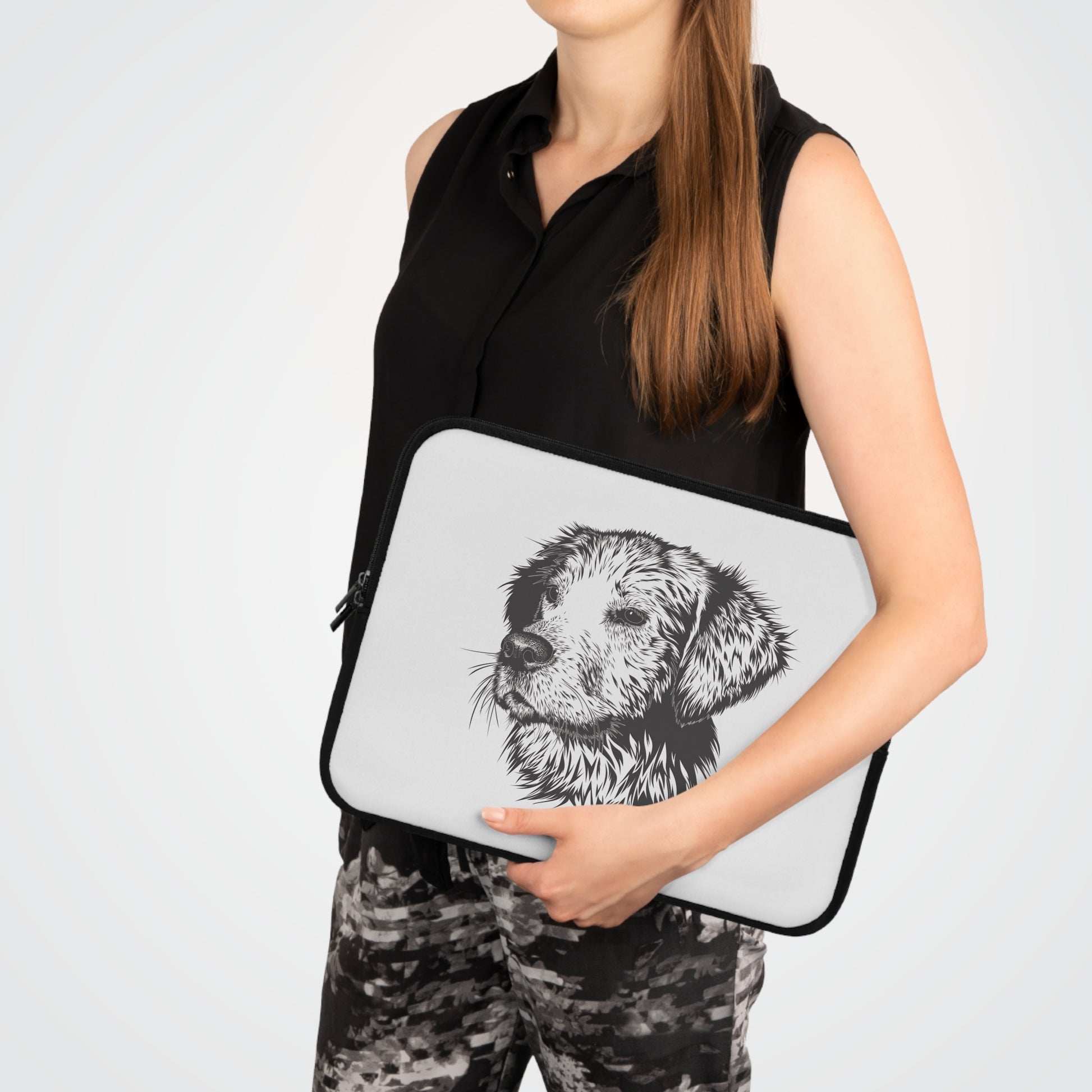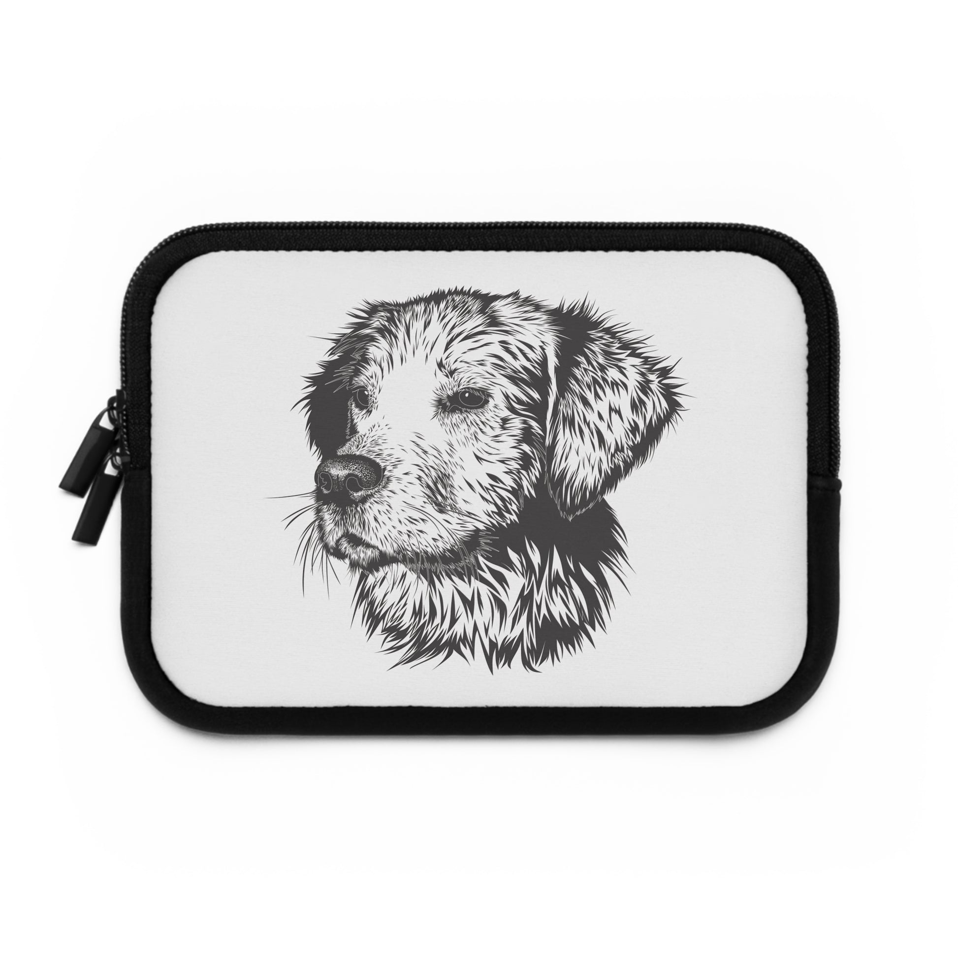 Keep your laptop safe with a sleeve that feels personal and calm. This neoprene sleeve pairs a clean, sketch-style dog portrait on a bright front with a solid black back, so your tech looks quietly confident whether you’re headed to a café or working from a sunlit living room. The foam padding cushions against everyday bumps and the water-resistant material helps fend off light spills and damp weather. Dual zippers glide smoothly and let you open the sleeve wide to slide your device in without fuss. Lightweight and available in multiple sizes, it slips into a tote or backpack without extra bulk — a simple, thoughtful way to carry a bit of warmth with your gear.