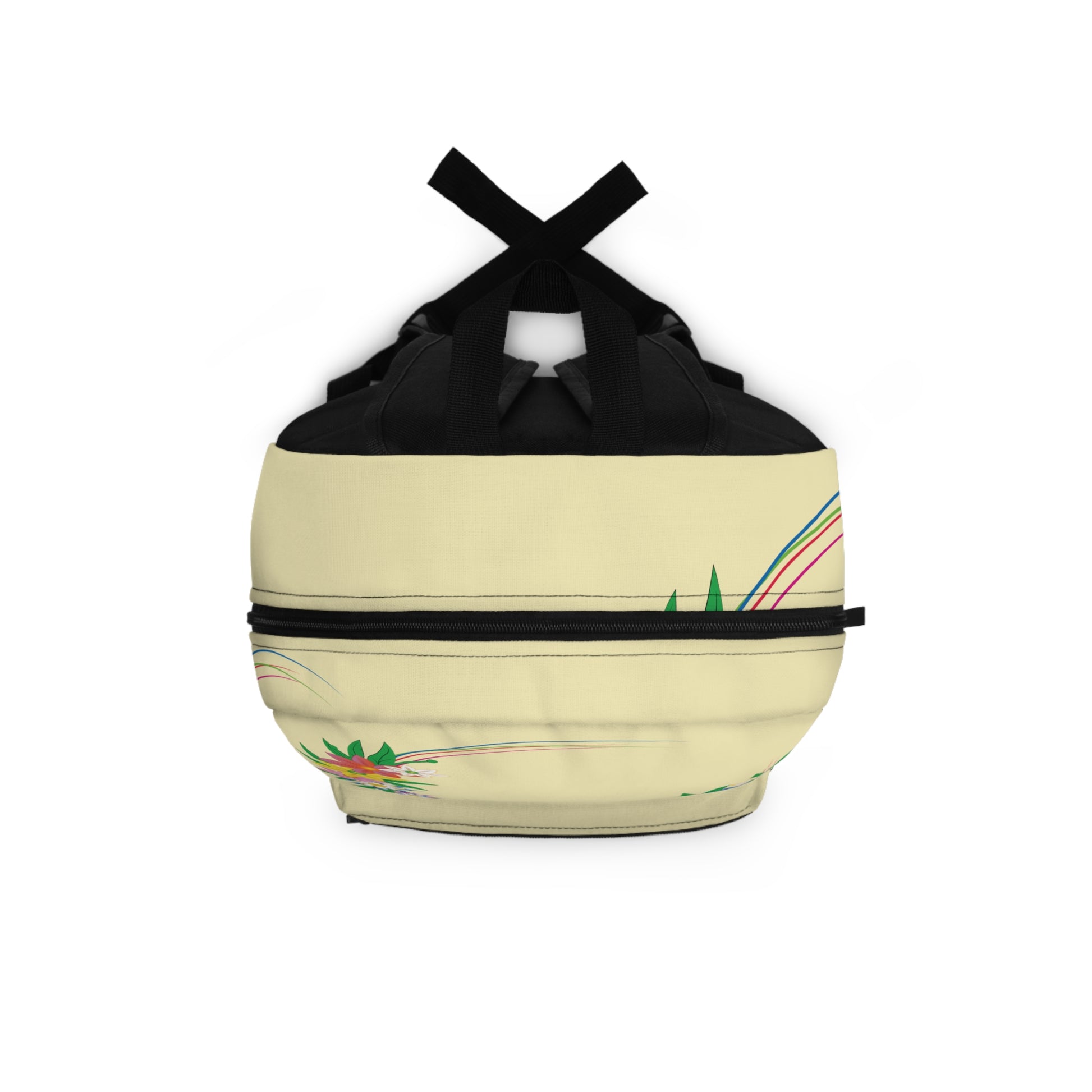 A light, cheerful backpack that carries a soft, sunlit mood wherever you go. Creamy canvas sets the stage for two hand-painted floral wreaths—one large on the main body and a smaller echo on the front pocket—bursting with pinks, yellows and fresh green leaves. The padded mesh back and adjustable straps make longer walks comfortable. Multiple zippered compartments and a dedicated sleeve keep a laptop, notebook, water bottle and small treasures organized. It feels like a pocket of spring you can sling over your shoulder for school days, weekend markets, or morning coffees on the go.