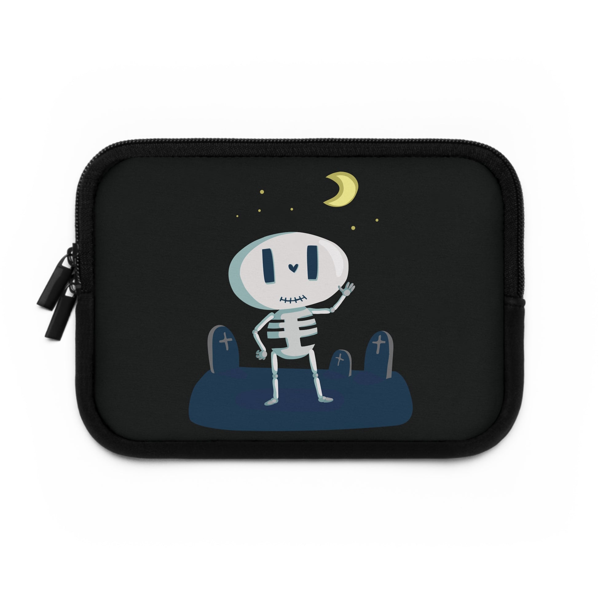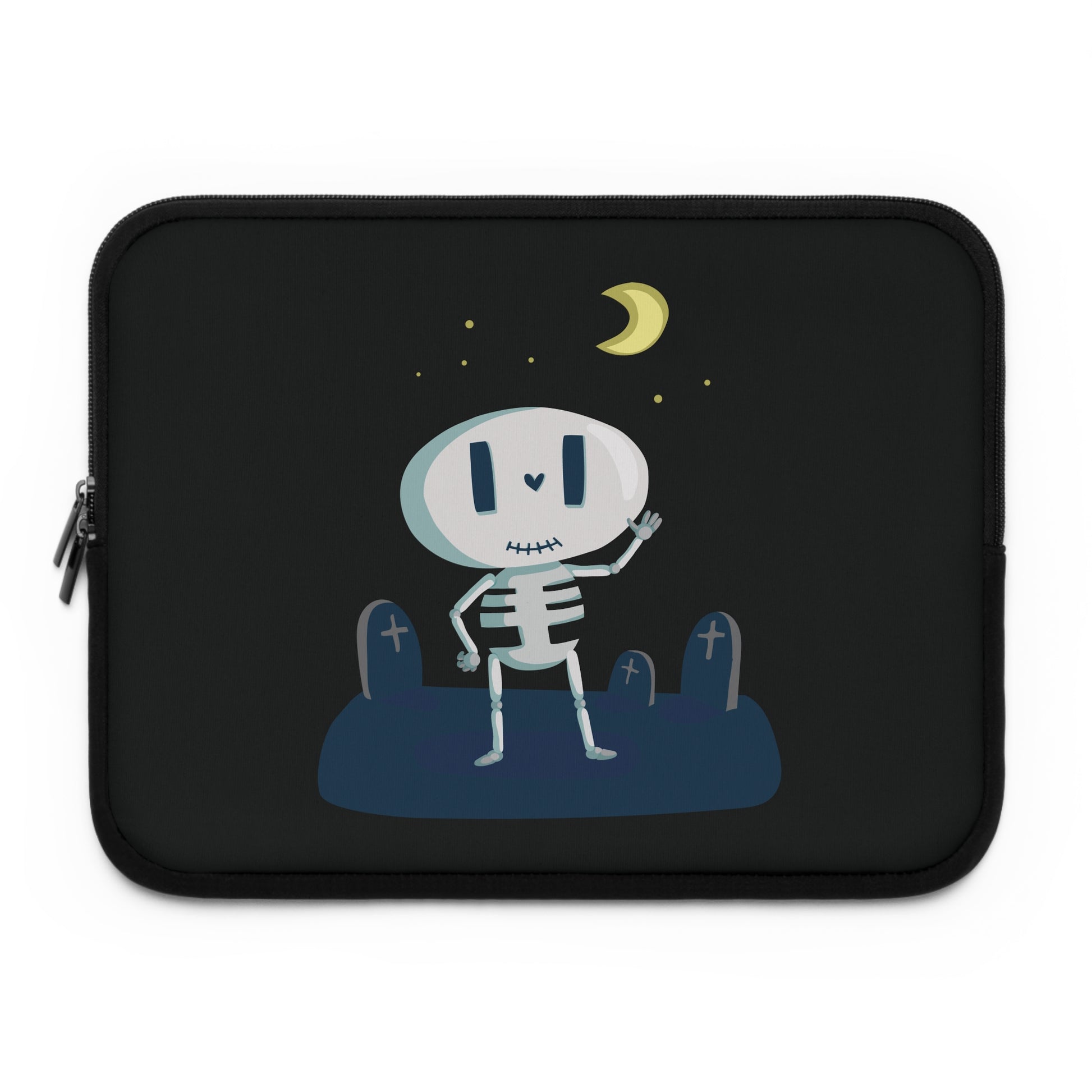 This laptop sleeve featuring a cartoon skeleton design brings a fun, playful, and lighthearted vibe to your everyday essentials. Instead of being dark or scary, the skeleton is illustrated in a cute, humorous style that instantly makes people smile.