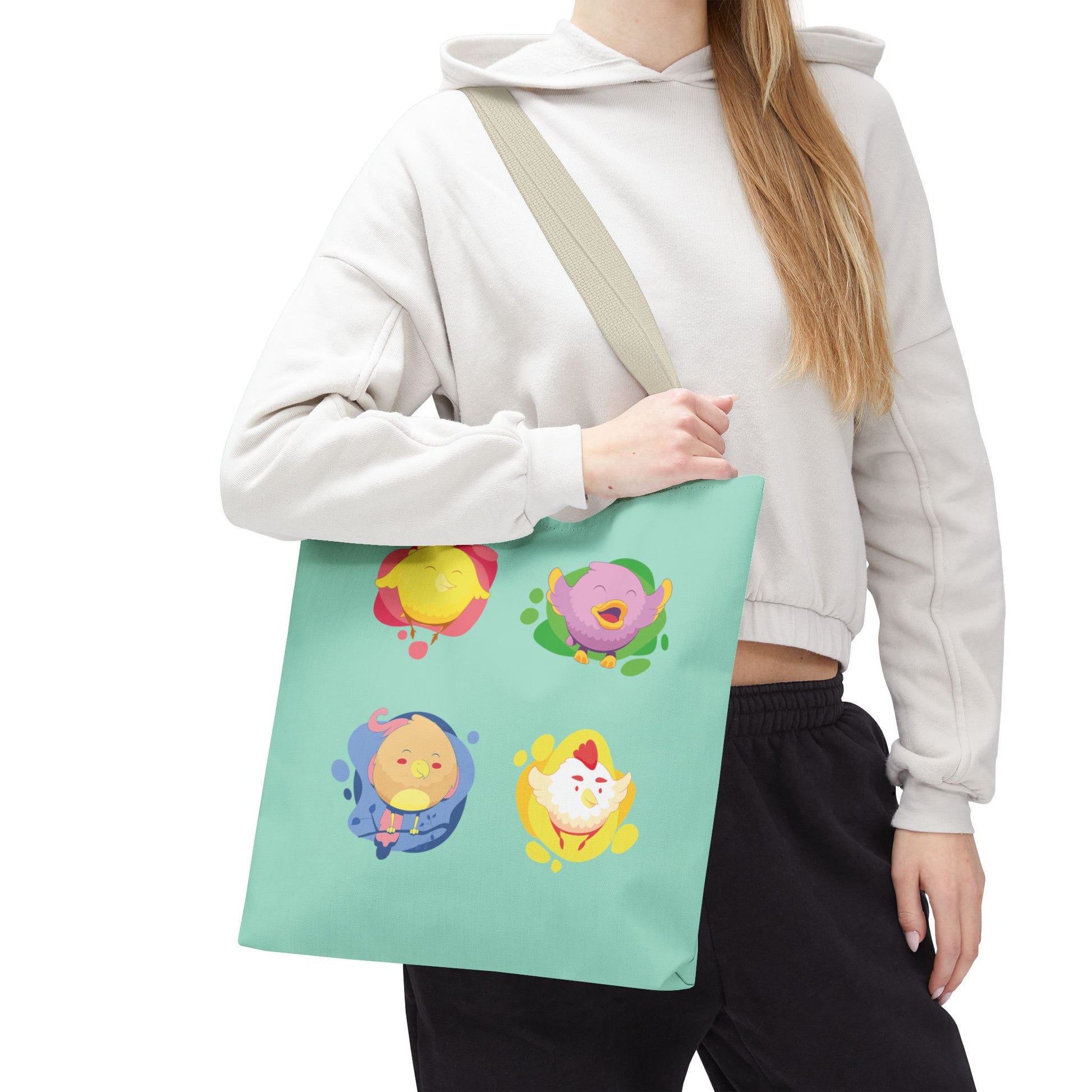 Why choose this product? Because it combines practicality with joy. The cute chicken and parrot design turns an everyday tote bag into a fun companion that brings smiles and positive vibes wherever you go.