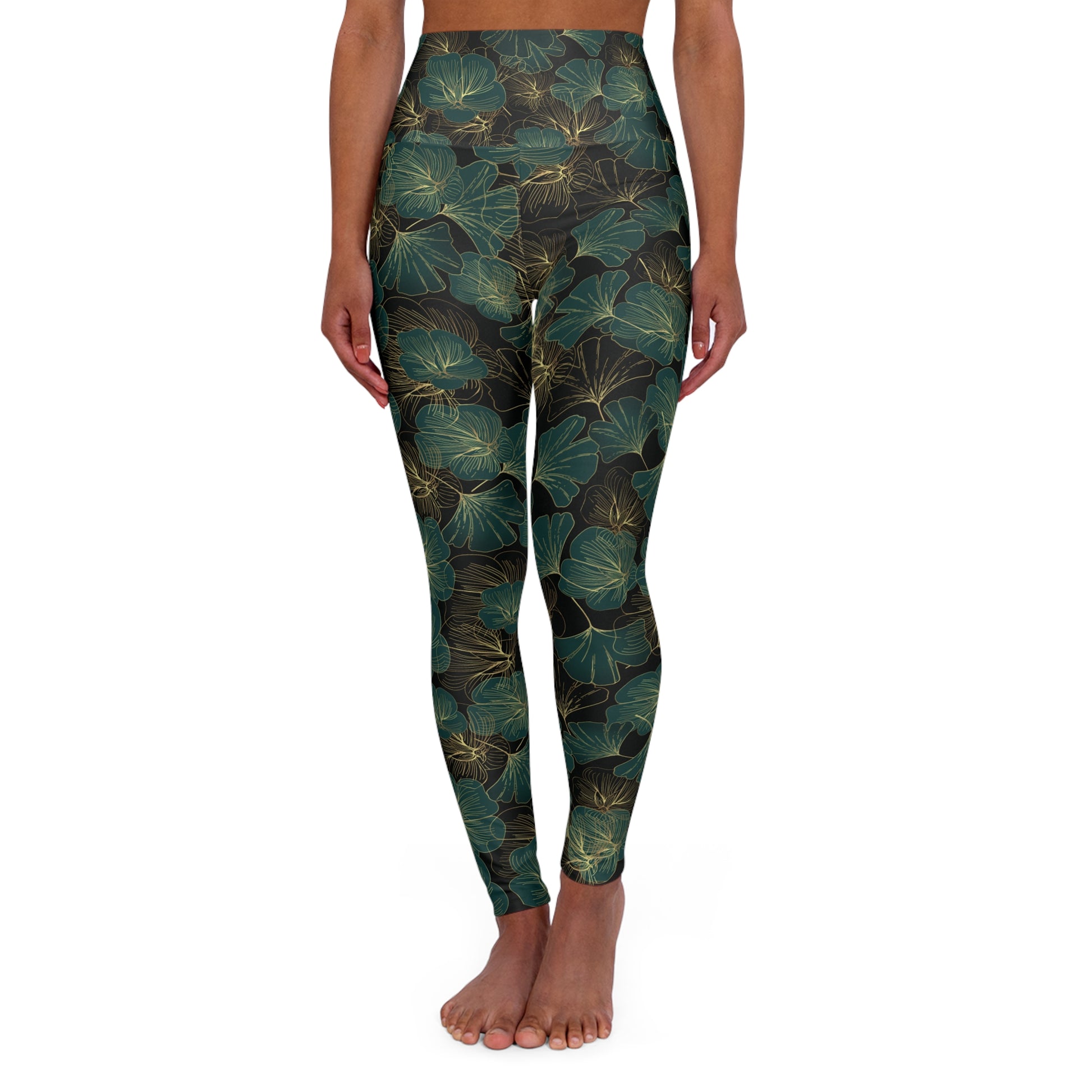 High-Waisted Yoga Leggings | Elegant Leaf Print Design