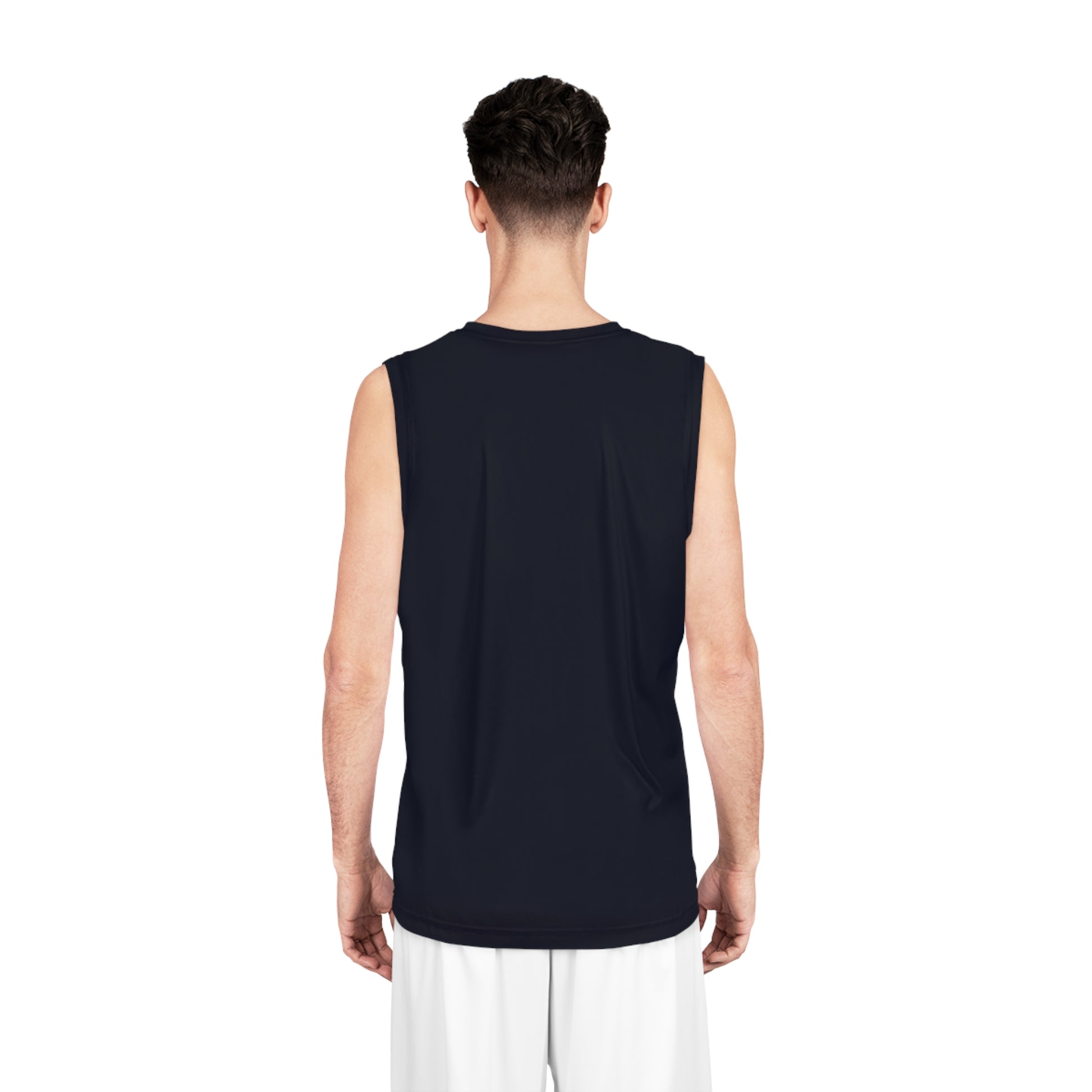 A lightweight, breathable basketball jersey that moves with you — and with quiet style. The deep navy background sets off a subtle monochrome illustration of a thoughtful figure seated on a bench, drawn in cool blue lines. The design reads calm and collected, suited to someone who values low-key aesthetics and functional performance. Wear it for pick-up games, early-morning drills, or as an easy layer when you’re heading out to the court to watch friends play. The extra-light, moisture-wicking fabric keeps sweat at bay while the odor-resistant finish helps you stay fresh through long practices. Double-stitched seams and side seams give the jersey structure and durability, so it keeps its shape as you move. Rounded neckline and sleeveless cut leave shoulders free — athletic, breathable, and quietly expressive.