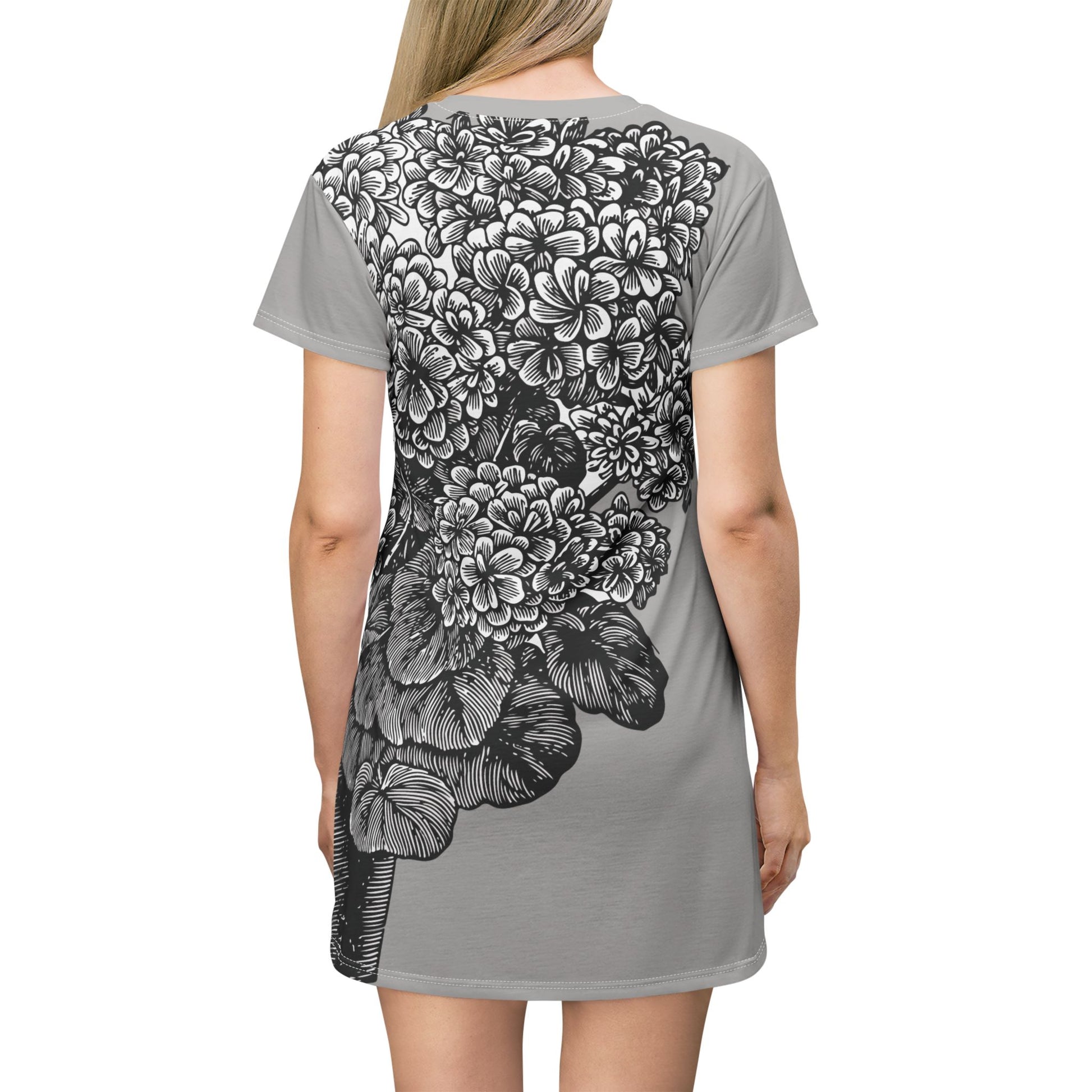 T-Shirt Dress | Daisy Pot Sketch Design | Elegant and Fresh